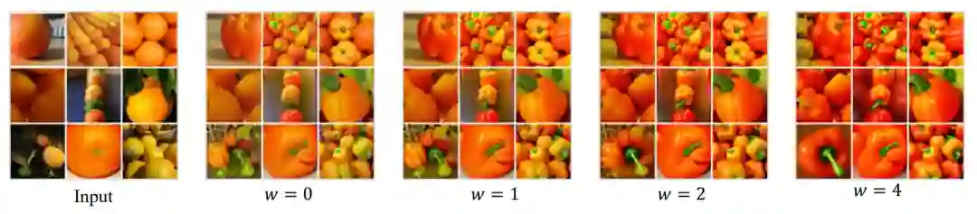 为了更好地理解如何纳入指导权重w,使用一个固定的w值训练的模型作为参照。
