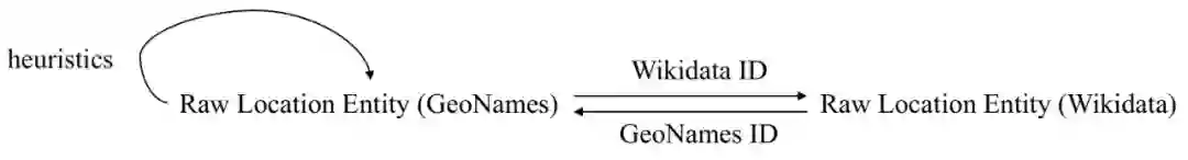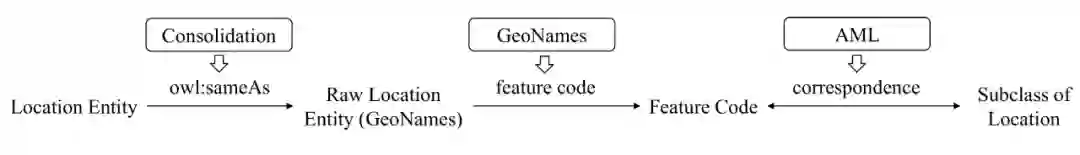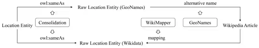 实体构建:我们收集了 GeoNames 的所有实体和 Wikidata 的含中文标签和经纬度的地理实体。我们使用了两个数据源中原有的实体之间的对应关系。此外,我们使用启发式的方法得到了 GeoNames 中可能重复的实体之间的关系。最后我们使用这些对应关系将相同实体合并为 CKGG 中的一个实体。