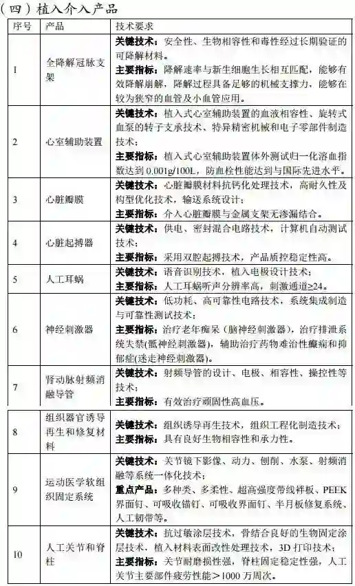 以下几个医疗器械子领域则被纳入了《方案》的扶持计划: