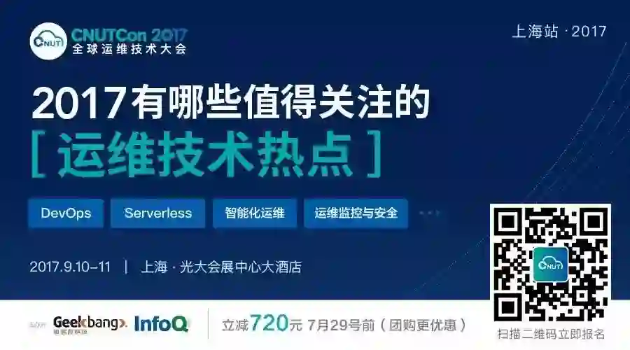 CNUTCon2017 全球运维技术大会作为 InfoQ 举办的顶级运维技术盛宴,将于 9.10-11 日在上海举行,目前已邀请了来自 Google、Uber、eBay、IBM、BAT、京东等顶尖互联网公司一线技术大咖前来分享智能化运维、SRE 与微服务、容器编排与管理、运维监控与安全等一系列前沿技术和最新实践。如果想了解运维技术最新趋势,来 CNUTCon 学习一定是你的不二选择。