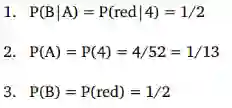 将上述描述转化成公式化的形式,可以设事件A表示抽取的卡牌是4,事件B表示卡牌是红色。因此,的含义就是我们例子中的