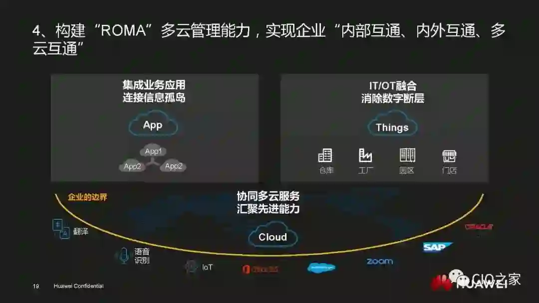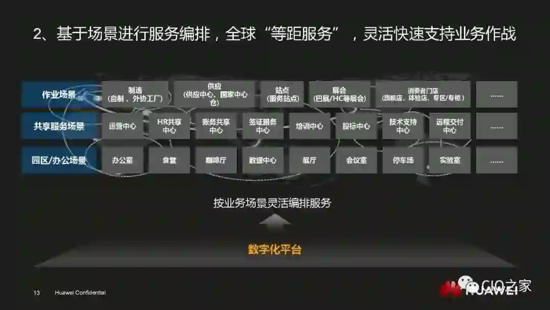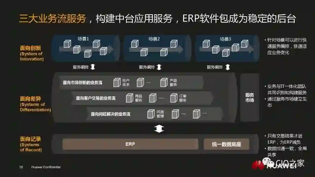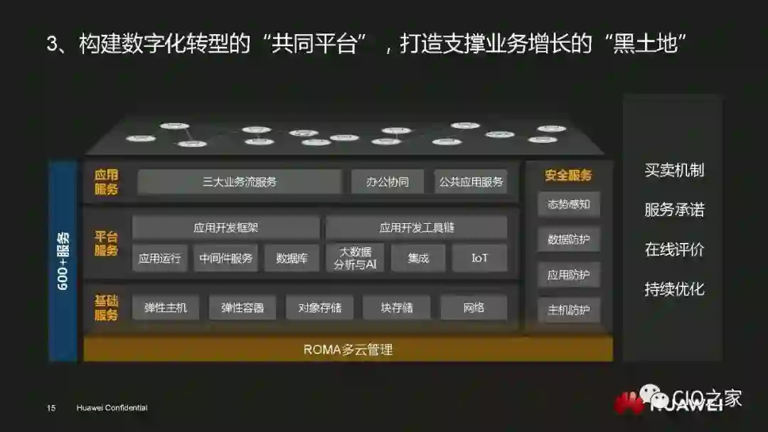 从企业的整体视角出发,单一技术是不可能解决所有问题的。作为信息系统的建设者,华为需要的是一个公共的服务平台。这个平台要提供安全数据和公共服务以及统一的基础设施架构,让华为可以根据自身的实际需求来平等地选择各类产品和服务。