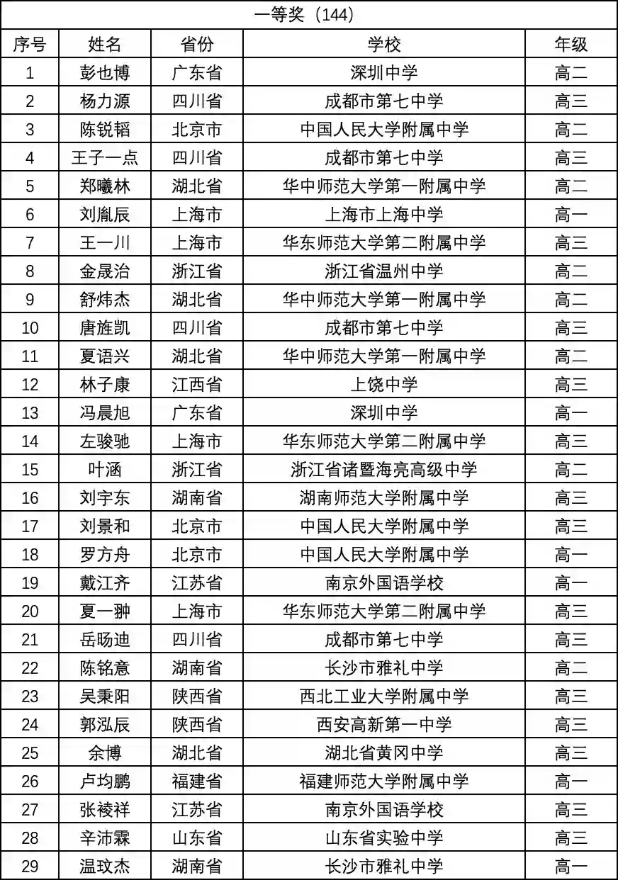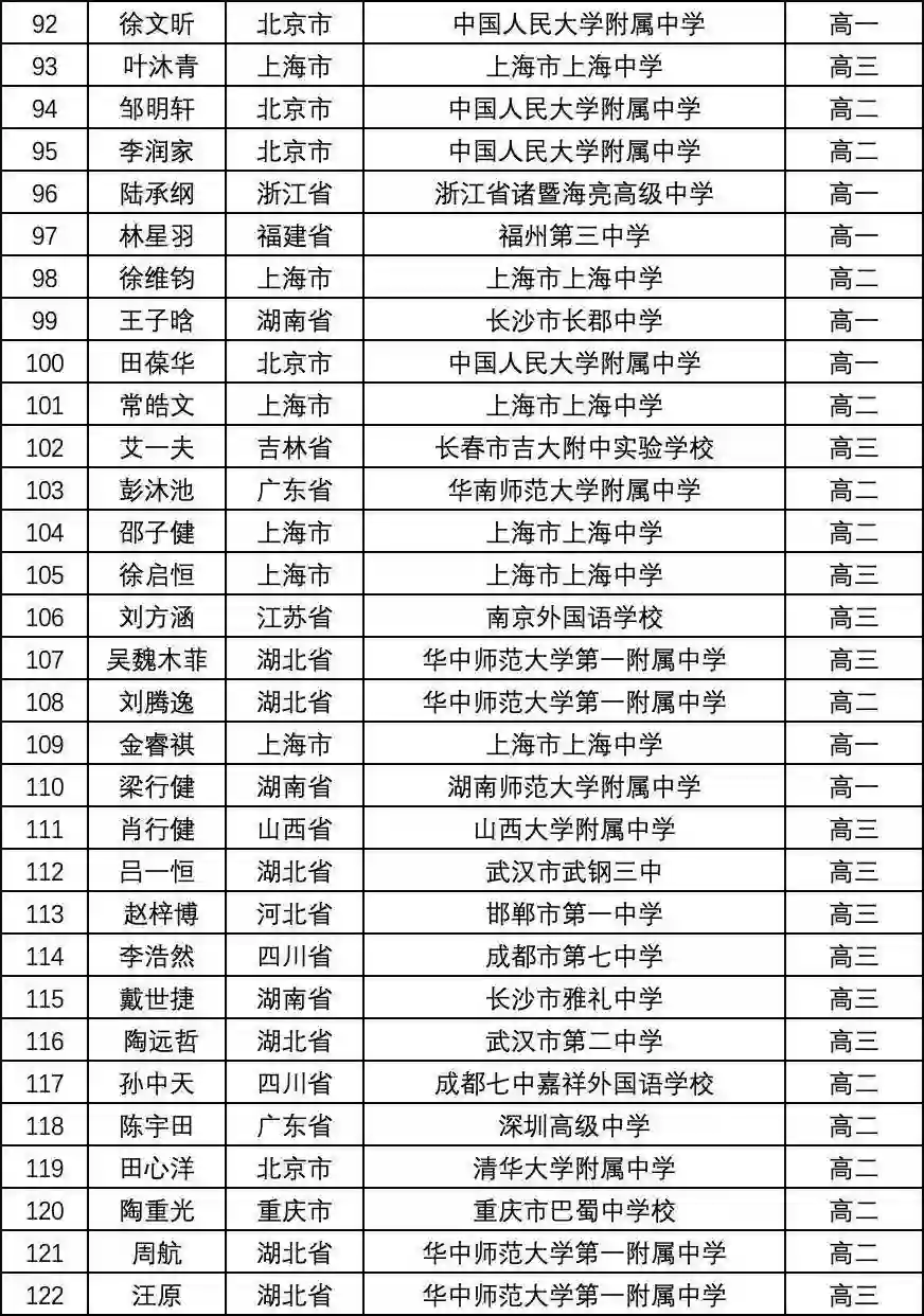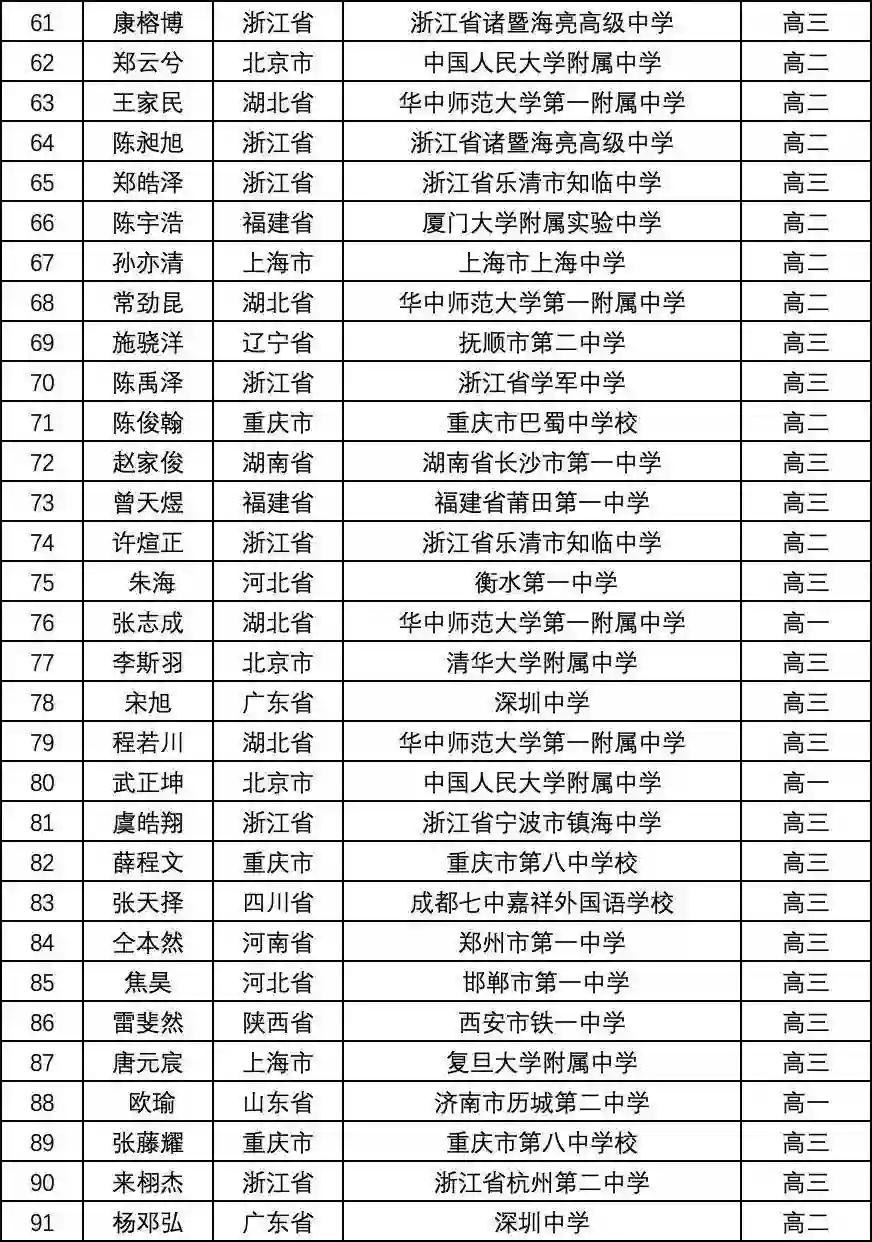 一等奖(金牌)完整名单如下: