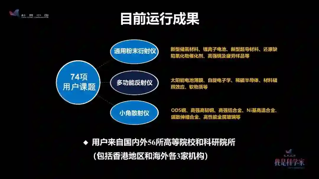 散裂中子源自建成后,就对社会全面开放,设备运行稳定。截止目前,已经完成了国内外56个高等院校和科研院所共74项用户课题,包括新型储氢材料、能源电池、超级钢等等。
