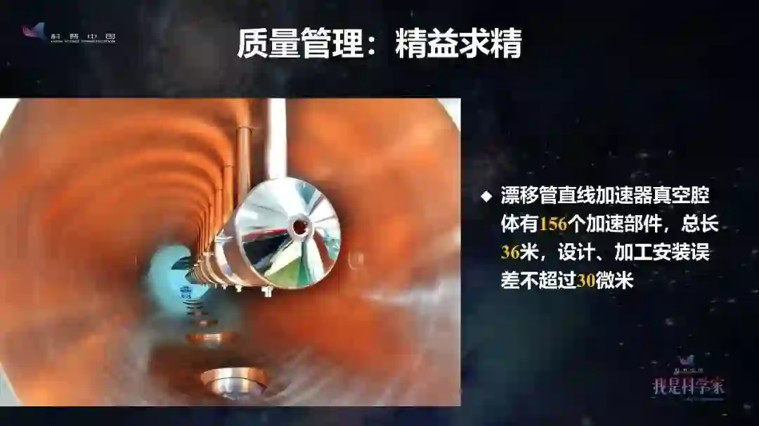 举个例子,我们直线漂移管加速器的真空腔体有156个加速部件,总长36米,设计、加工和安装的误差不超过30μm,这么严格的指标是建设者们反反复复精益求精实现的。