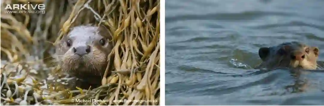 鼻头是重要鉴定特征:在亚洲,鼻头没毛的水獭里,欧亚水獭的鼻头轮廓显得好方,而且上下明显突起(左),不像江獭的鼻头边缘显得圆润(右)。点开图片可放大 | Michael Durham / flpa-images.co.uk;kalyanvarma.net