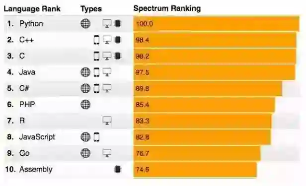 2018 IEEE最热门48种编程语言榜,Python雄踞四项第一!