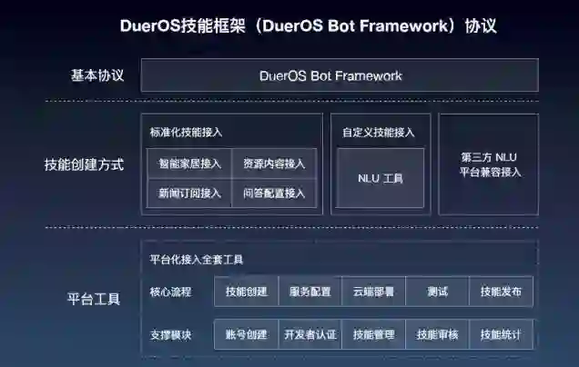 小度智能设备开放平台在技术能力、解决方案、平台体系三个方面进行了全面升级。解决方案的升级,包括更好的远场语音交互开发套件、全新的语音交互APP解决方案、全新的DuerOS for Apollo解决方案以及全新的跨场景跨设备解决方案;平台体系的升级,包括新增的物联网设备云、智能设备质量认证支持,平台体系更加丰富。而小度技能开放平台,则将面向内容类、智能家居类、生活服务类合作伙伴,开放百度的自然语言理解、知识图谱及系统意图等核心AI能力,提供技能开发工具链,真正实现“零门槛”开发。