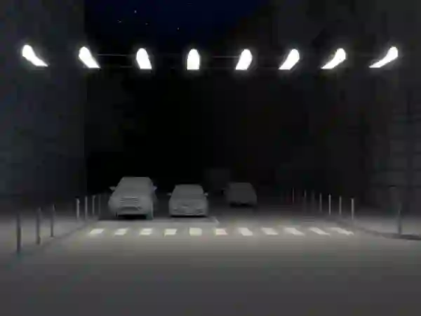 国外有设计师为人行横道设计了一套照明系统,在人行横道的正上方,建设带有钢架支撑的 LED 照明灯。