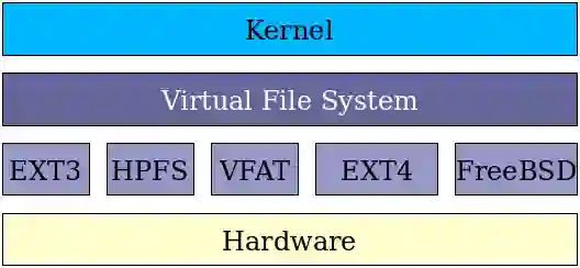 这两层中的第一层是 Linux 虚拟文件系统。虚拟文件系统提供了内核和开发者访问所有类型文件系统的的单一命令集。虚拟文件系统软件通过调用特殊设备驱动来和不同类型的文件系统进行交互。特定文件系统的设备驱动是第二层实现。设备驱动程序将文件系统命令的标准集解释为在分区或逻辑卷上的特定类型文件系统命令。