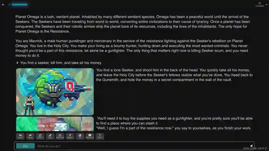 生成式技术将带来全新的游戏体验,与我们以前常玩的经典文本冒险游戏不同,以前的游戏角色的对话完全由游戏设计师安排,并且玩家只能在几个选项里选择——而《AI Dungeon》里的角色,是可以回应玩家的任何命令的。
