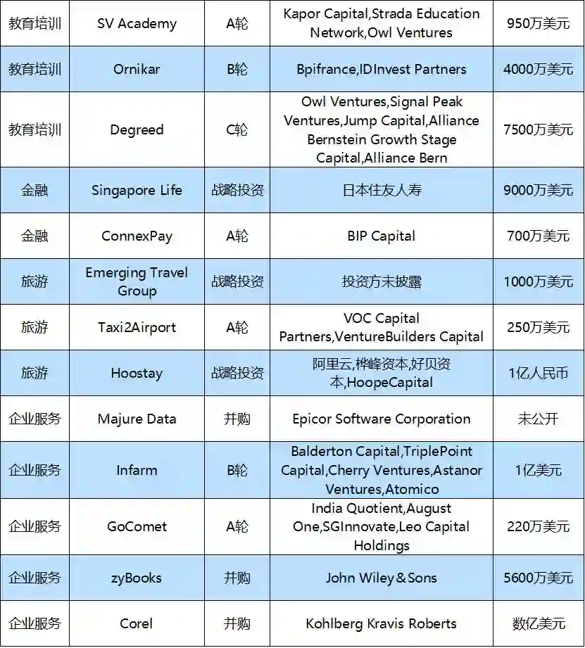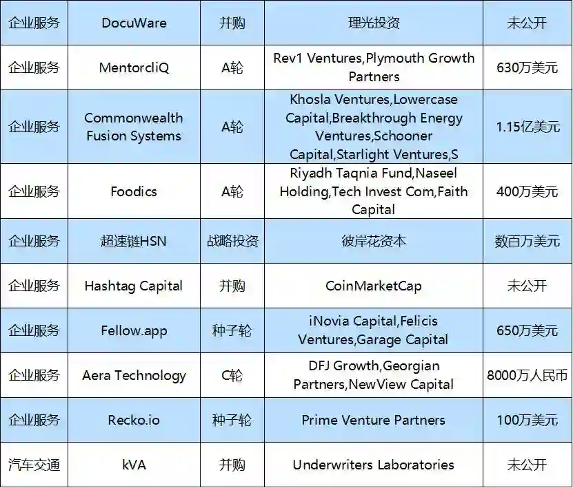 本周国外10大融资事件