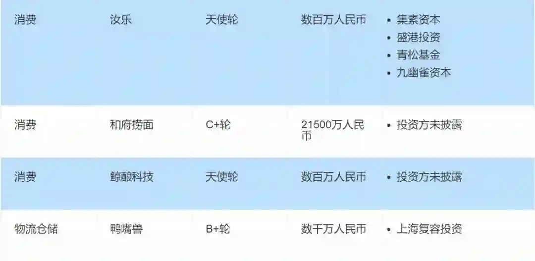 和府捞面完成2.15亿元C+轮融资;