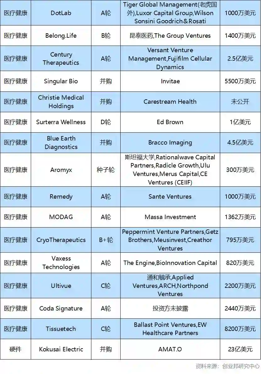 全球投融资周报,与你分享每周的投融资热点。