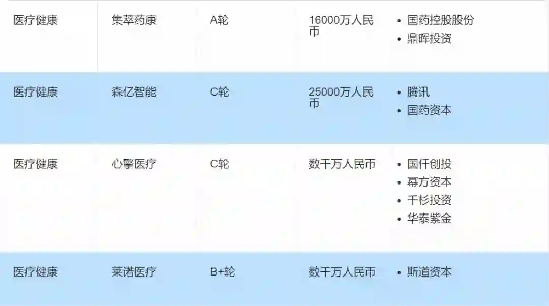 单笔融资额过亿的融资案例主要集中在医疗健康领域。