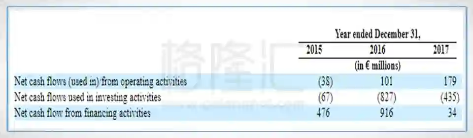 目前,Spotify的现金流比较健康,经营性现金流从2016年的1.01亿欧元增长至2017年的1.79亿欧元。