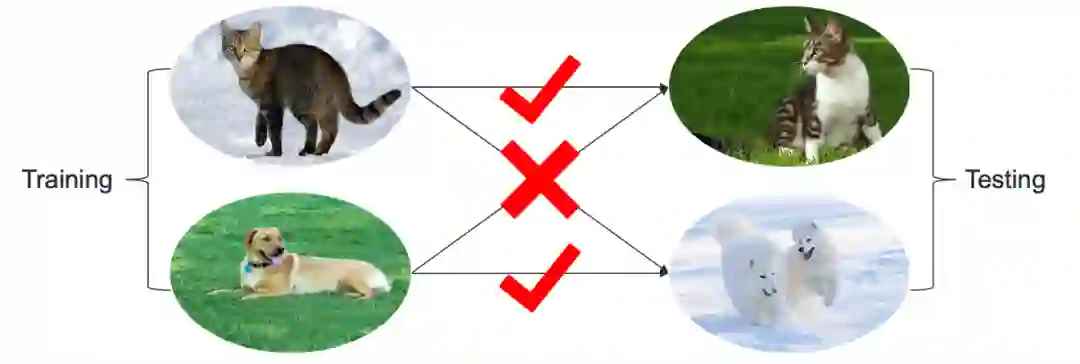 NICO数据集建立的初衷是吸引更多机器学习的研究者关注智能认知的本质机理。这样的机理将更接近人类智慧的习惯(比如因果),因此具备跨环境的稳定性和鲁棒性。为了支持以上研究,区别于传统数据集,NICO的图像样本除了主体类别标签,还有唯一的上下文信息描述主体的属性或者背景,通过在训练环境和测试环境中以不同比例组合不同的(主体对象,上下文)单元,可以灵活方便地构造数据环境模拟不同的Non-I.I.D.场景(见补充材料),支持对智能认知的本质机理的研究。