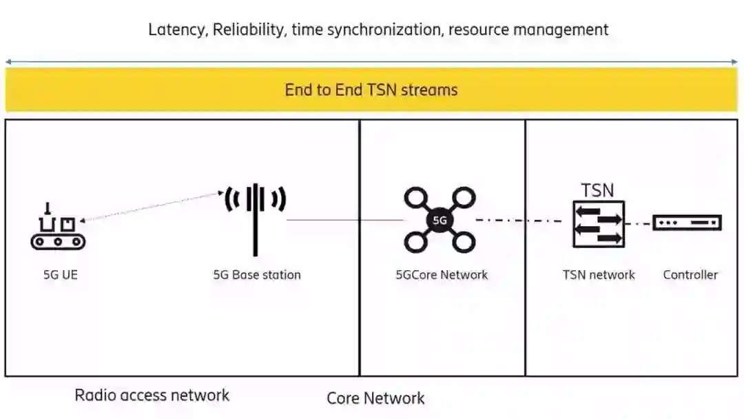 为了在5G上支持加载TSN服务,需要进一步增强无线接入网络和核心网络。主要挑战是实现TSN和5G网络的互通。