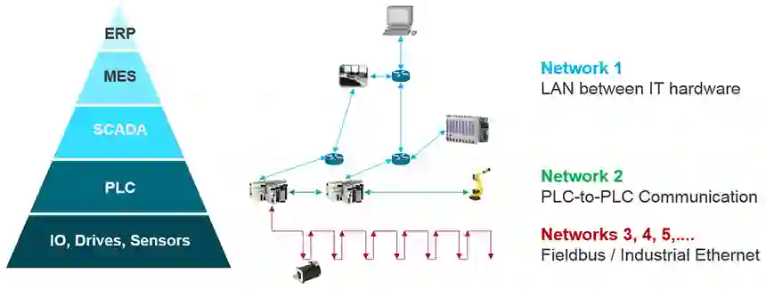 从纵向来看,工业企业中现有的网络架构是分层的。信息层、控制层和现场层,对于网络的需求不尽相同。