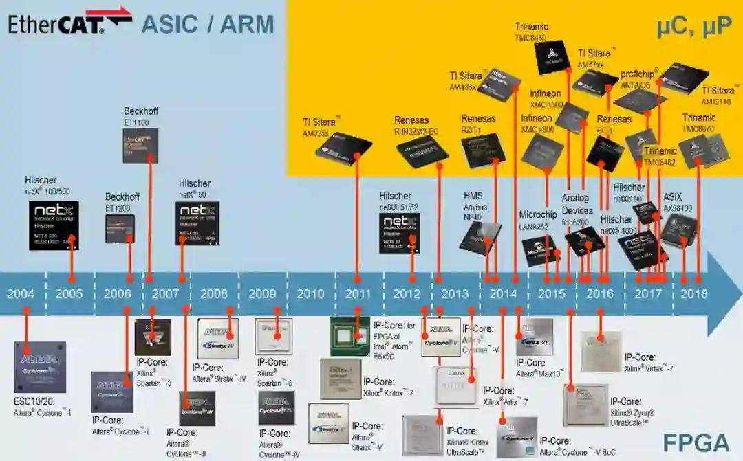 EtherCAT技术于2003年由德国倍福公司在当年的汉诺威工博会上首次发,2003年底ETG组织成立。面对竞争激烈的工业总线协议市场,EtherCAT以超高速、低成本和开放性等特点,获得了广泛认可与接纳。