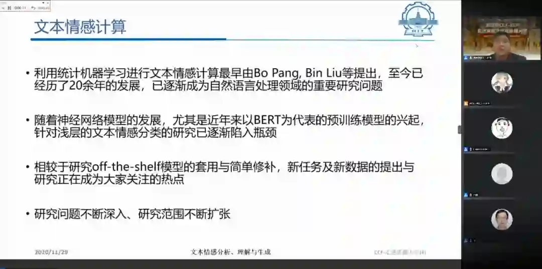 接下来的报告环节中,首先进行分享的是哈尔滨工业大学(深圳)教授、博士生导师-徐睿峰老师,分享主题是《文本情感分析、理解与生成》。