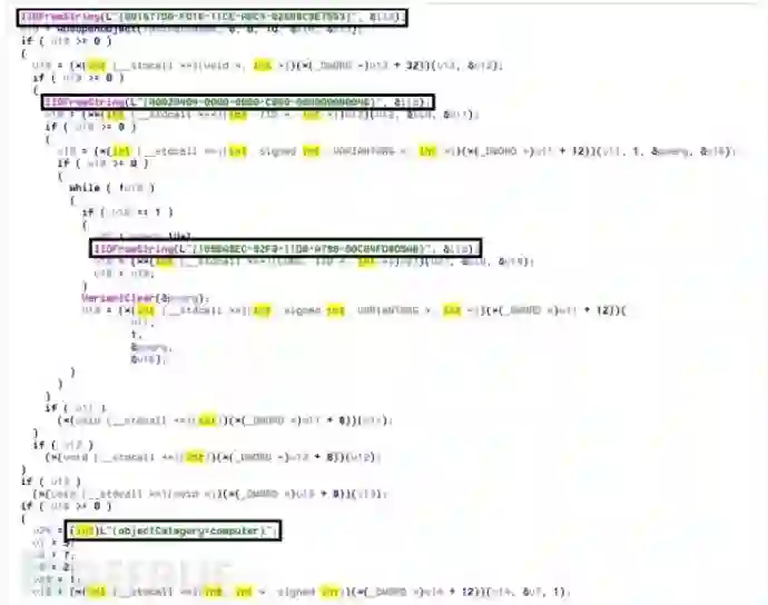 图8.使用WNetEnumResourceW和GetComputerNameW枚举和标识已连接系统的代码的屏幕截图
