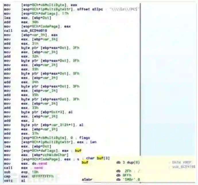 图13.显示可能的SMB通信的代码的屏幕截图