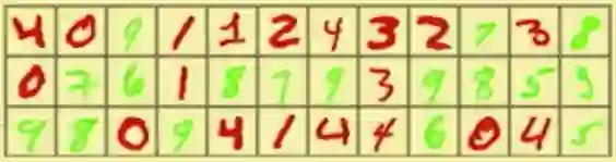 但是,假设训练数据集略有修改,每个手写数字也被涂上红色或绿色。