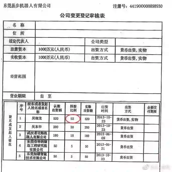 工商信息中,东莞易步机器人有限公司成立于2010年9月20日,周伟间接持有易步股份,而武汉诺比特机器人有限公司只占17.64%。