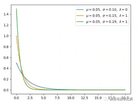 如下所示展示了指数分布的构建的制图方式,我们可以直接定义概率密度函数,再打印出来就好了。