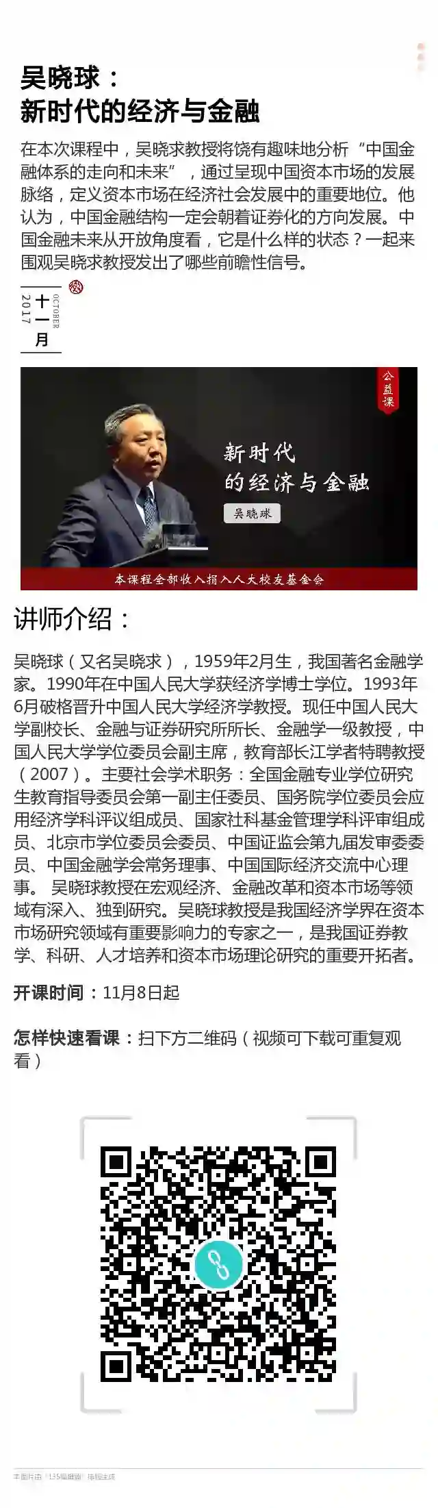 ◆课程开放时间:2017年11月8日起即可观看