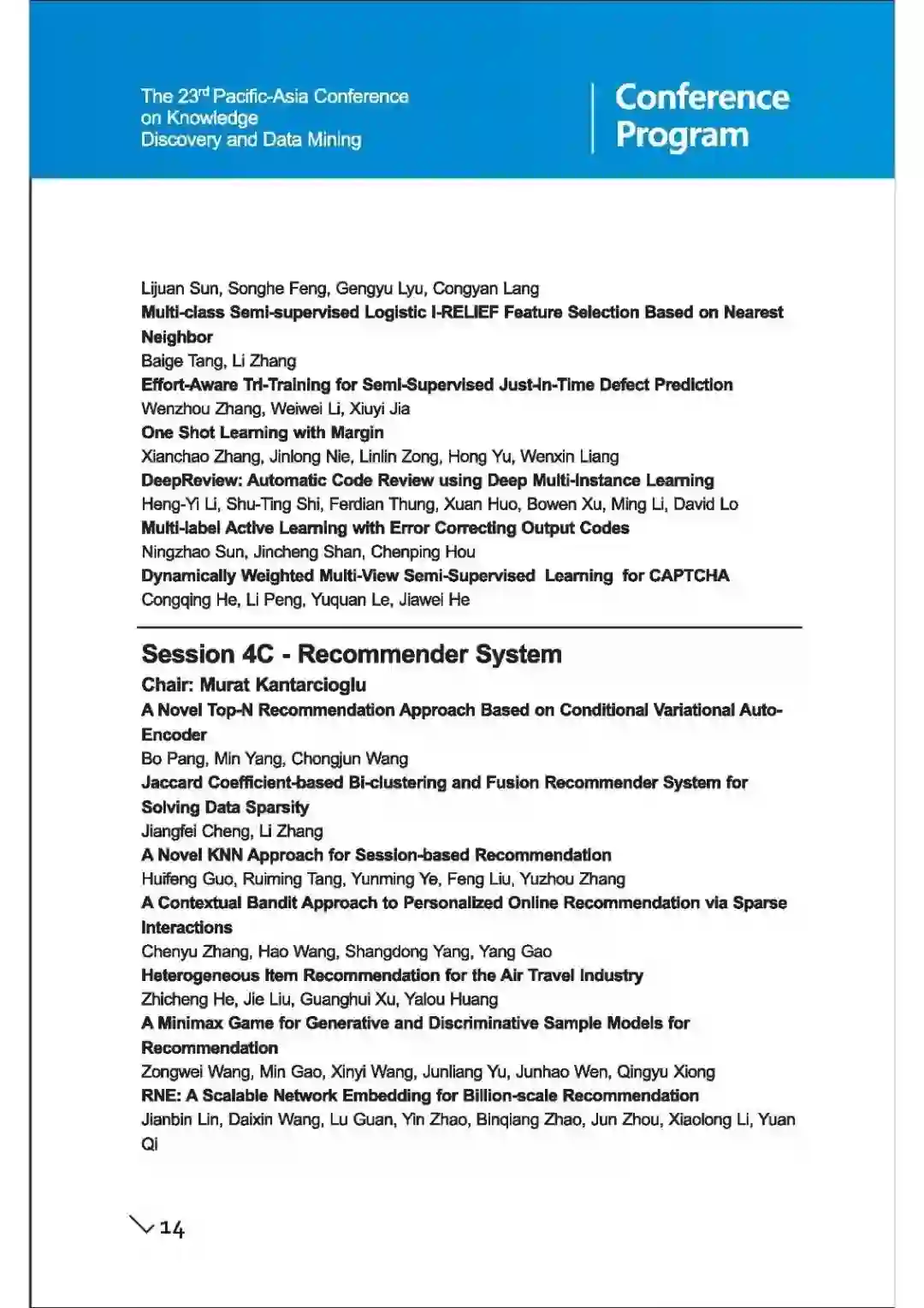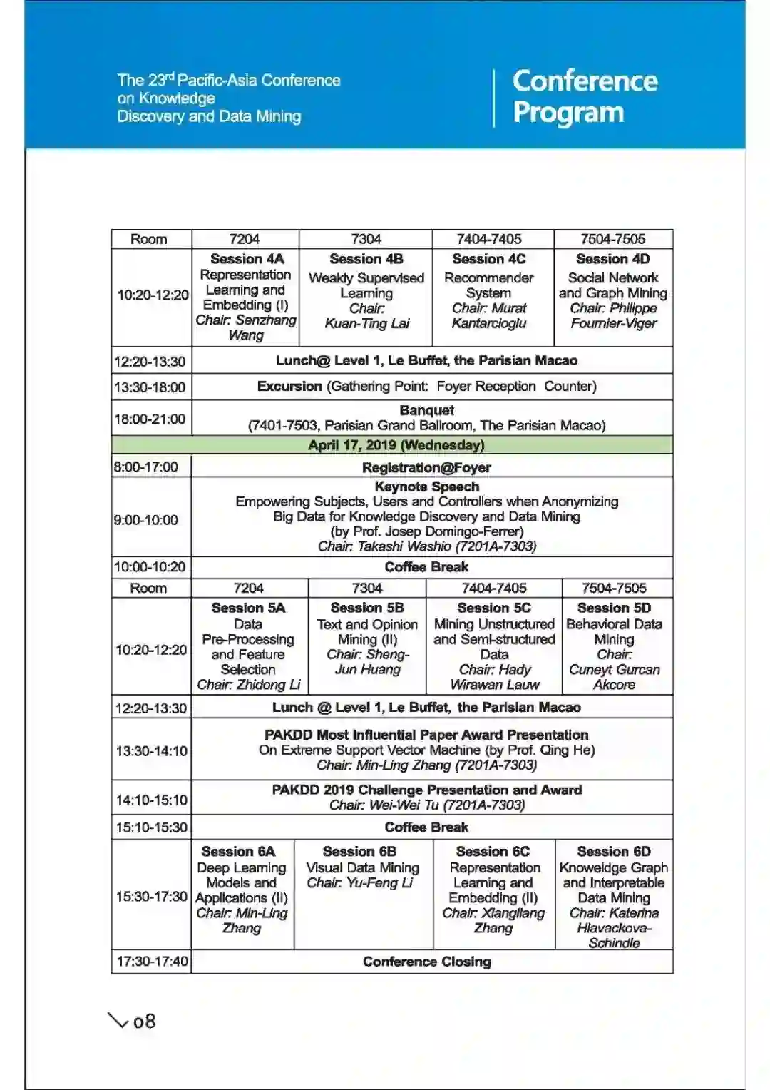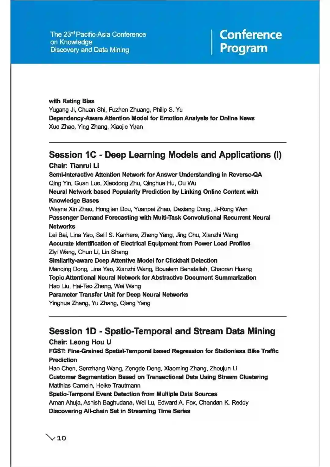 PAKDD 是数据挖掘领域历史最悠久,最领先的国际会议之一。它为研究人员和行业从业者提供了一个国际论坛,供大家分享在 KDD 相关领域的新想法,原创研究成果和实践开发经验。