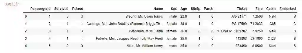 探索数据是第一步。你需要从 Kaggle 的 Titanic 页面下载数据,然后将下载的数据放到你启动 Jupyter 笔记本的文件夹中。