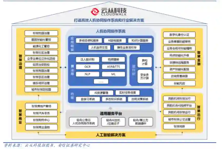 官网显示,云从是一家高效人机协同操作系统和行业解决方案提供商的公司。公司主要业务为通过自主研发的人机协同操作系统,提供信息化、数字化和智能化的人工智能服务,服务于智慧金融、智慧治理、智慧出行、智慧商业等应用场景。