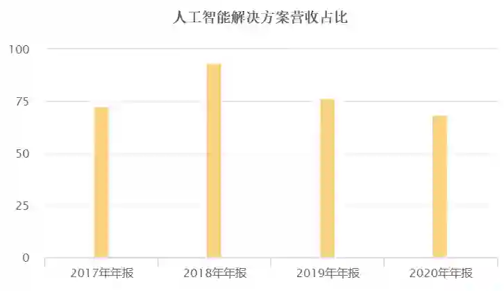 两大业务之中,人工智能解决方案不断下降,2018-2020年间的营收占比,由93.3%下降到68.2%;人机协同操作系统业务则整体处于稳中有升的局面,占比由6.4%上升到31.4%。