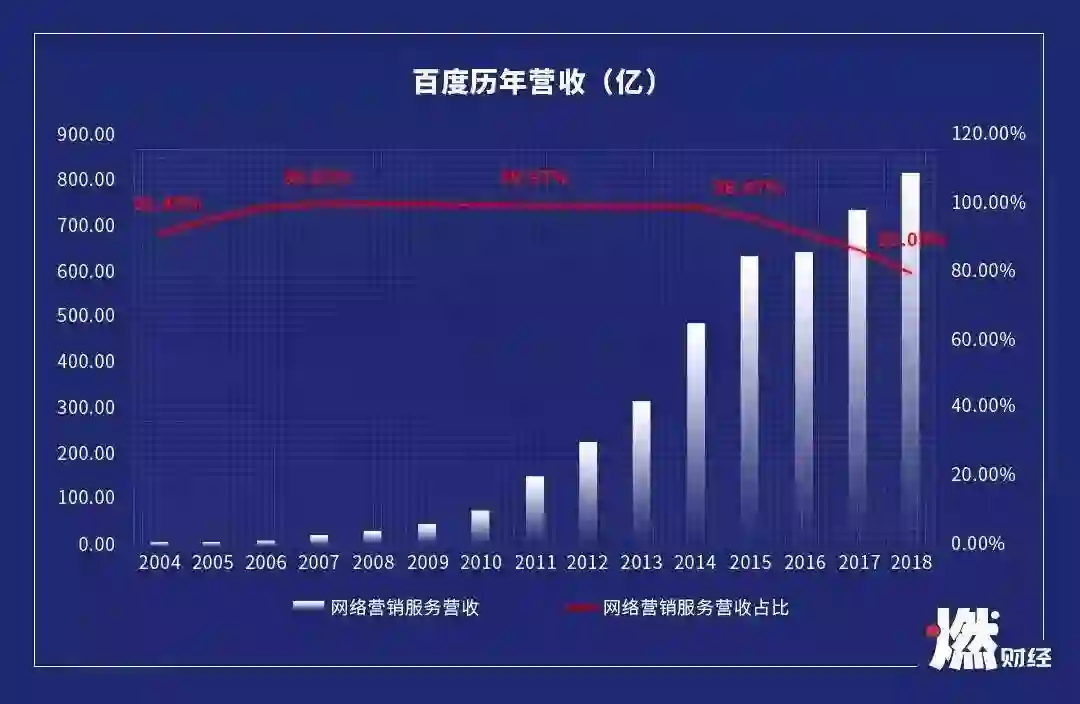 百度历年网络营销服务营收占比 制图 / 燃财经