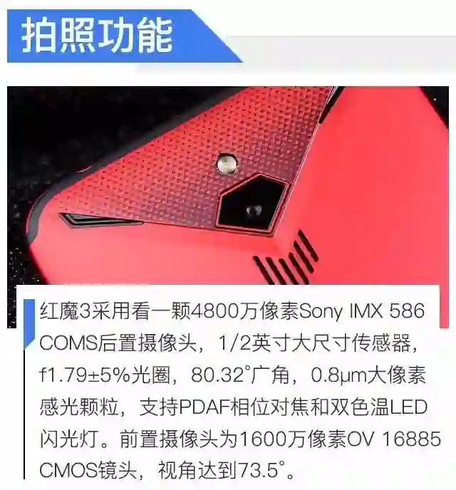 尽管如此,以拍星空著称的努比亚依旧为这款电竞手机装上了业界最主流的IMX586CMOS。