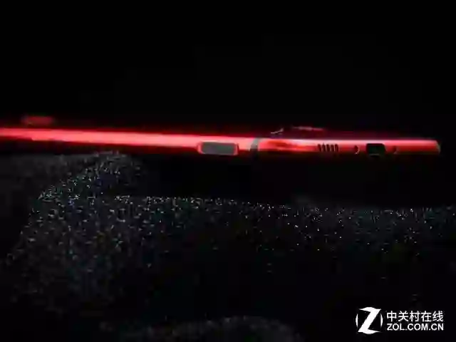 左侧有一颗进入电竞模式的实体滑块,滑块还做了特殊斜边的纹理处理,顶部3.5mm耳机接口依旧得到了保留,但mic被移到了后盖上。