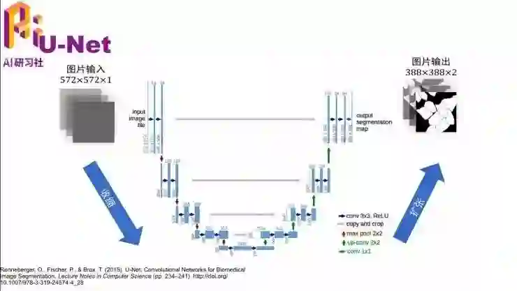 我下面补充一下这个U-Net的概念,如果没有医学图像切割的一些知识背景的话,可能不太理解它。其实U-Net就是一个网络结构,参考文献在最下面。这种网络结构,就是画出来长得字母U,然后所以叫yU-Net。