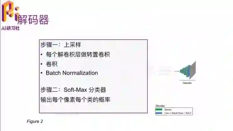 因为刚开始有一个图像的encoder,还是要把它解析出来。最后就有一个soft-max的分类,也是一个两分类的,就是每一个像素是前景还是背景的概率。是前景的话,就是我们要切割出来的部位;如果是背景的话就不是我们感兴趣的地方。
