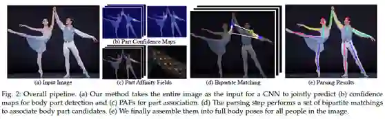 完整的姿态评估流程入上图,首先预测热图与PAF,然后进行匹配与解析,最终得到输出的姿态评估结果。相关的论文地址如下