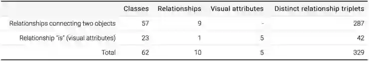 在标注中,关系与对象形成一个三词短句。(例如「桌上的啤酒,beer on table」)。属性实际上也与前者类似,例如:「桌子是木制的,table is wooden」。标注是基于图像级标签和 Open Images V4 的边界框标注。我们最初选择了 467 个短句,并在 Open Images V4 训练集上进行了标注。视觉关系检测分赛的训练集最终由 Open Images V4 标注训练集中的 329 个至少有一个实例的短句组成,包含 62 个不同的对象类。