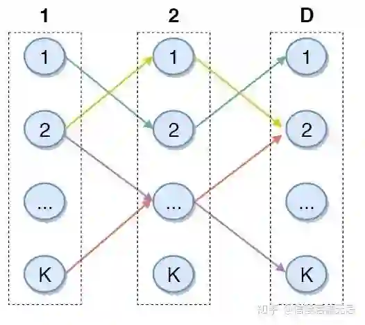 使用一个D x K维的矩阵来作为索引结构。模型预测需要走D步,每一步有K种选择。走到最后会有K^D可能的路径(也可以叫做编码),每一条路径可以代表一个包含多个item的集合,每个item反过来也可以同时在多条路径的集合里面。路径可以看做是一个聚类结果。