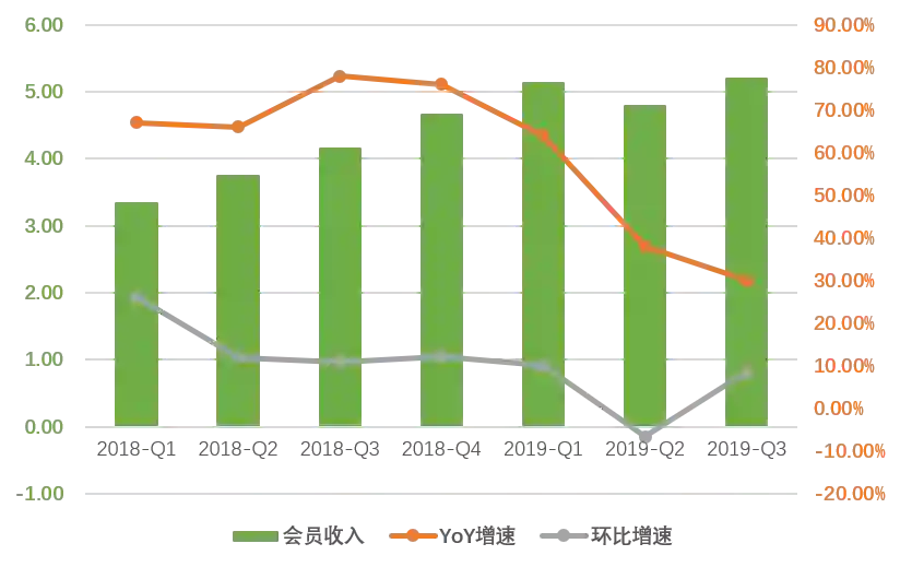 会员的新增逐步进入停滞,会员收入的增速也出现了下滑的趋势