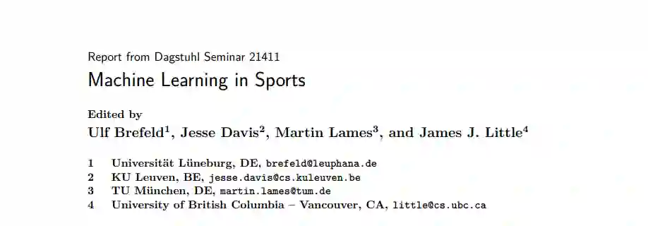 关于运动的数据长期以来一直是运动科学家研究和分析的主题。这些数据越来越大的规模和可用性也吸引了机器学习、计算机视觉和人工智能研究人员的注意。然而,这些社区很少相互影响。这个研讨会旨在将这些领域的研究人员聚集在一起,以激发跨学科的方法来解决这些问题。研讨会围绕五个不同的主题组织,并以教程和概述形式介绍了关键概念,以促进不同背景的研究人员之间的知识交流和基于数据的体育研究方法。通过对具体问题或技术的更深入的介绍,这些内容得到了补充。有一个由实践者组成的小组讨论,讨论了将分析应用于实践的困难和经验教训。最后,我们得出了一些结论和下一步的步骤。