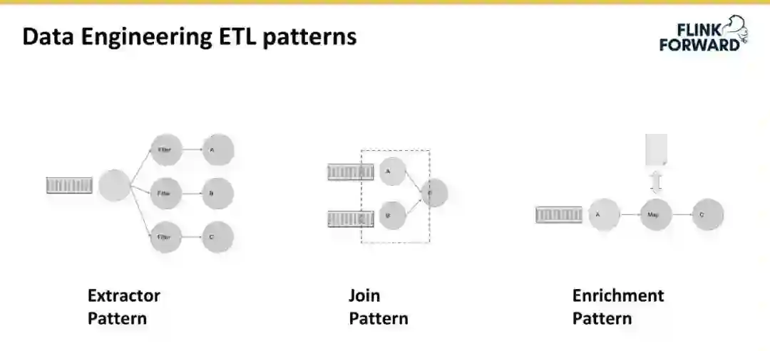 平台拥有很多需要在其之上写 ETL 工程的用户,当用户越来越多的时候,平台的可伸缩性显得尤为重要。为此,平台采用了一系列的 pattern 来解决该问题。具体来讲,主要有三个 pattern 正在使用,即 Extractor Pattern、Join Pattern 和 Enrichment Pattern。