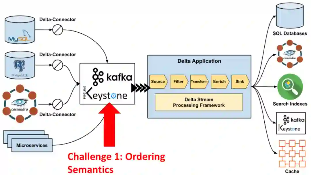 在变更数据事件中,必须要保证 Event ordering,比如一个事件包含 create、update 和 delete 是三个操作,需要返回给消费者侧一个严格遵守该顺序的操作事件。一个解决方案是通过 Kafka 来控制;另一个解决方案是在分布式系统中保证捕获的事件与实际从数据库中读取数据的顺序是一致的,该方案中当所有的变更事件捕获出来后,会存在重复和乱序的情况,会通过 Flink 进行去重和重新排序。