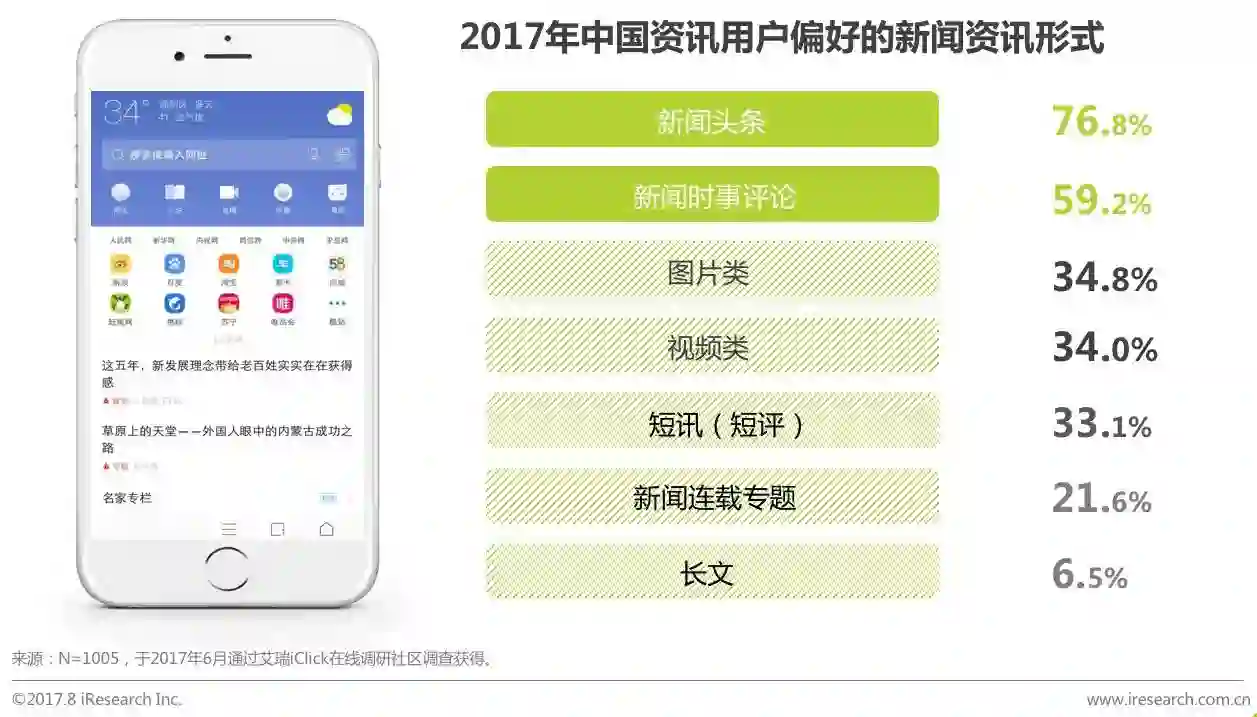 新闻头条和新闻时事评论是用户最为偏好的资讯形式