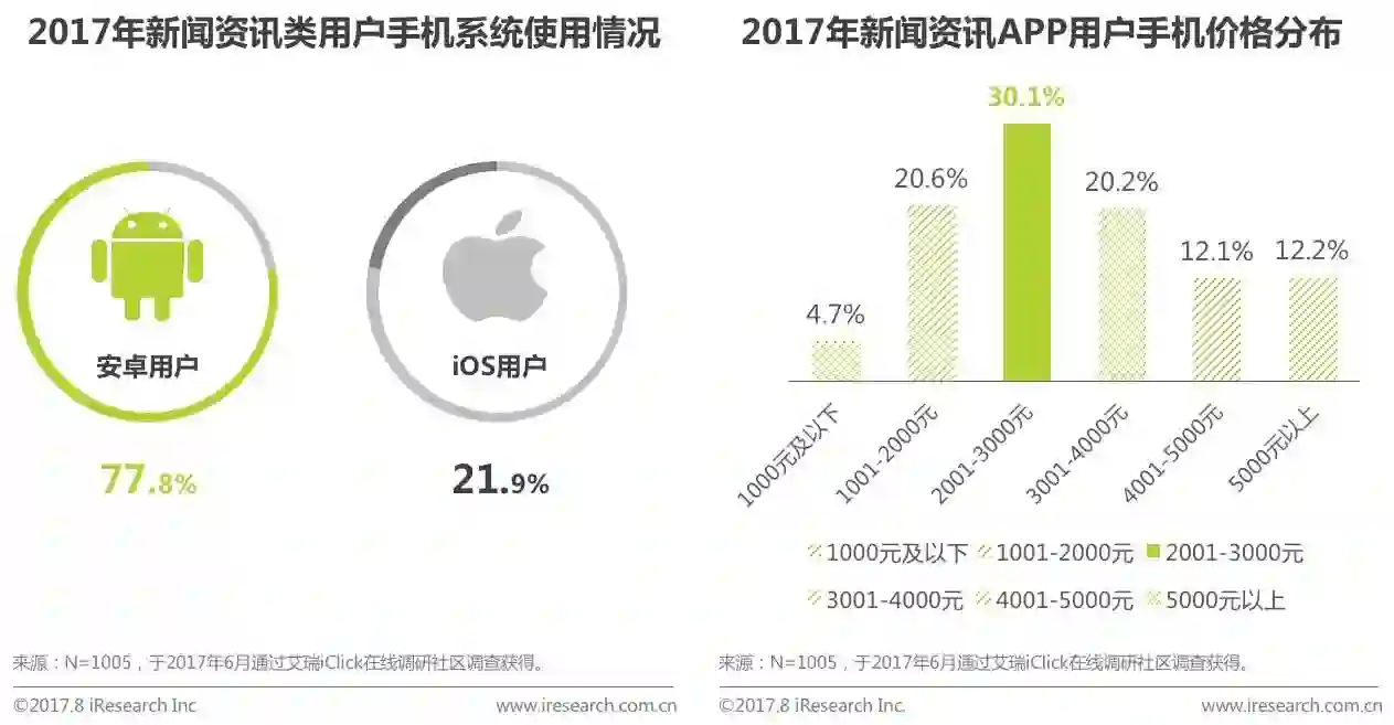 资讯类APP用户手机价格集中在2001-3000元的安卓系统机