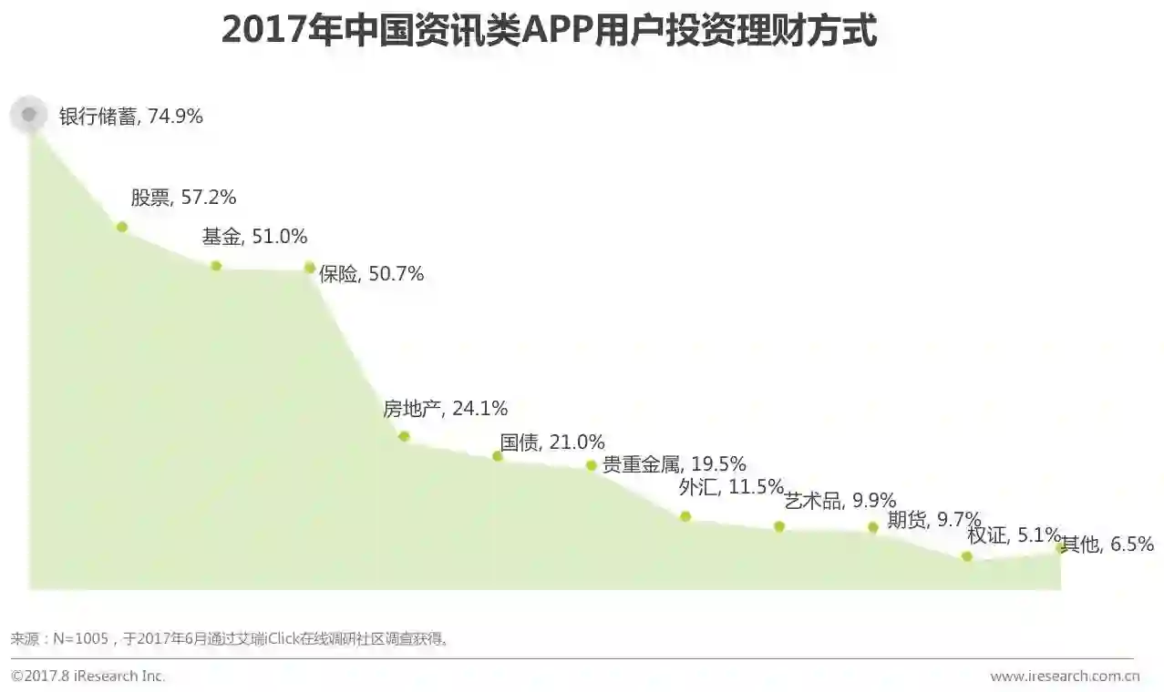 随着金融业的蓬勃发展,居民的投资理财手段也逐渐趋于多元化,但银行储蓄仍然是最重要的投资理财方式,占比74.9%。另外股票,基金,保险的渗透率分别为57.2%,51.0%和50.7%。